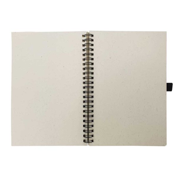 - Features: Pen loop, spiral binding, info details inside cover