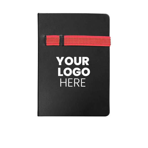 A premium A5 PU Notebook with a built-in pen holder and mobile holder, designed for everyday use and corporate gifting. Made with a durable PU cover, available in Grey, Blue, and Red strap colors. Supports Screen Printing, UV Printing, and Debossing with Foiling.