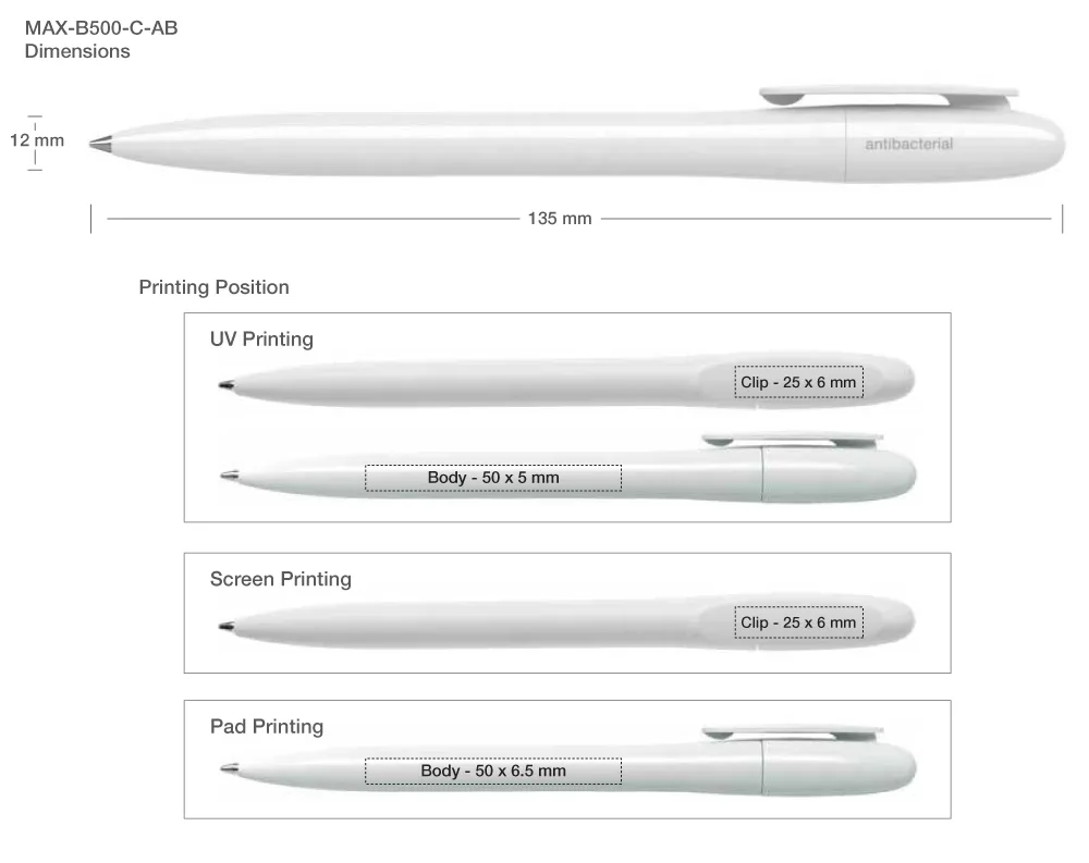 Promote your brand responsibly with Maxema Antimicrobial Pens – stylish, eco-friendly, and perfect for corporate gifts and promotional giveaways.