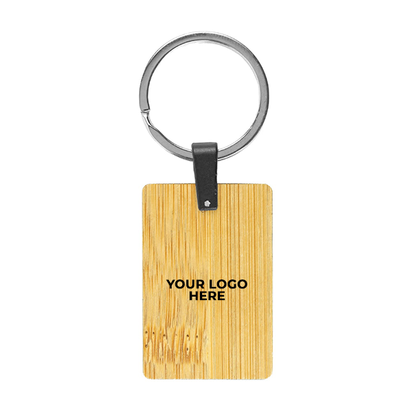 The metal component adds durability and structure while providing a clean contrast to the bamboo surface. This combination allows the keychain to suit a wide range of branding styles, from modern and minimal to bold and detailed designs.