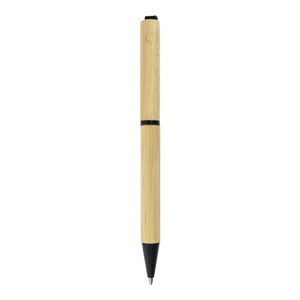 Twist Action Bamboo Ball pens with black color Metal clip, ring, and tip.