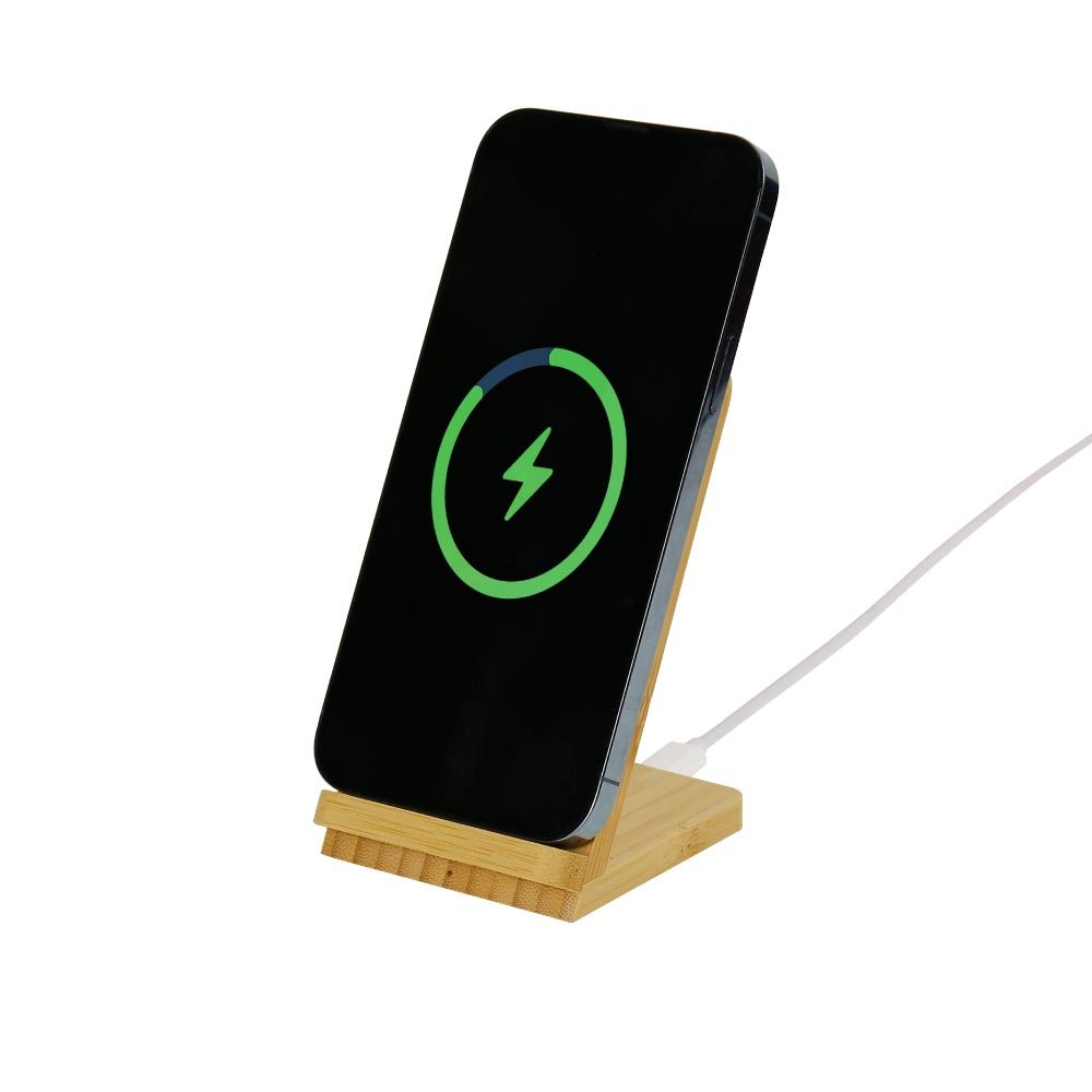This Bamboo Wireless Charging Stand combines eco-friendly design with modern technology. Made from natural bamboo, it charges your devices wirelessly and looks stylish on any desk or bedside table.