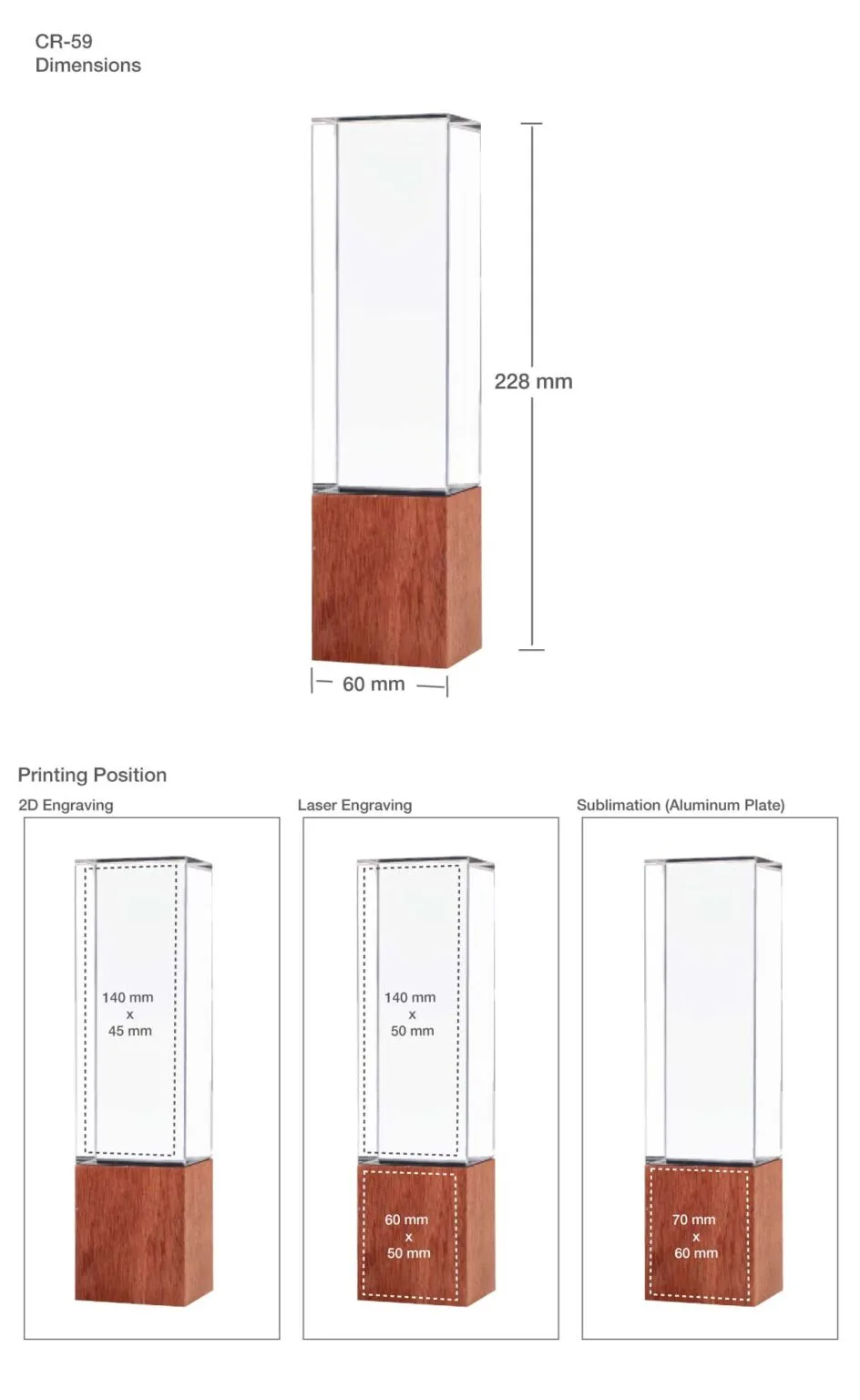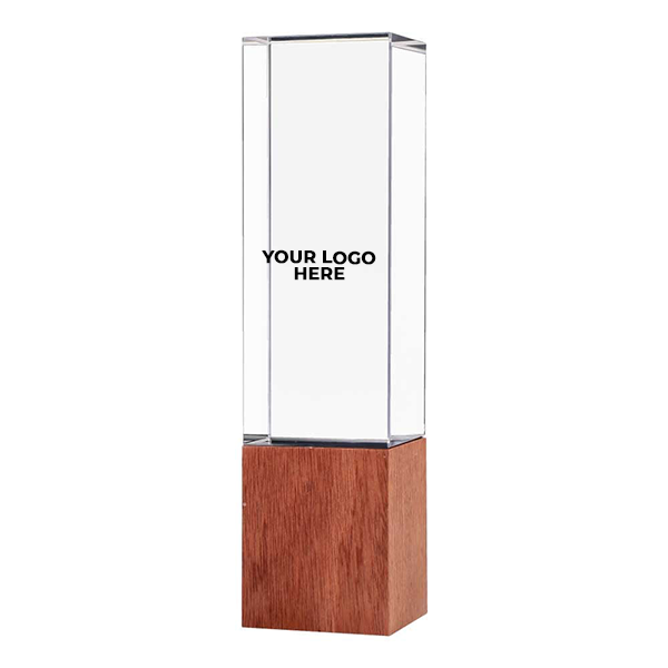 Cuboid Shaped Crystal Awards with Wooden Base