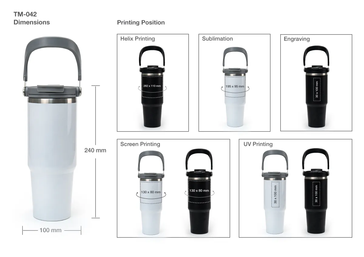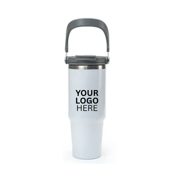 900 ml double-wall stainless steel tumbler with handle and flip-straw lid. Vacuum insulated to keep drinks hot or cold for longer. Durable, stylish, and perfect for daily use or promotional gifting.