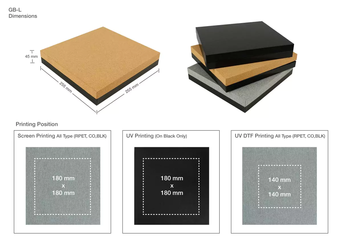 Material Options: RPET, Cork, Hardboard
