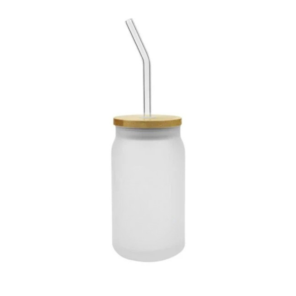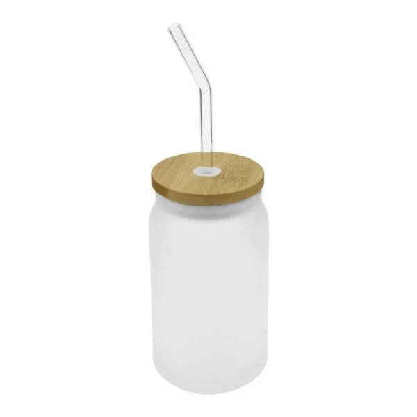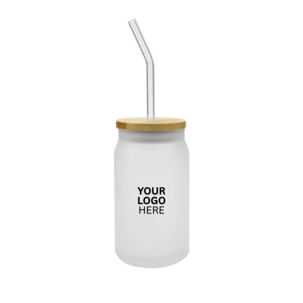 455ml frosted glass bottle with bamboo lid and reusable straw. Eco-friendly, stylish, and customizable for promotional use.