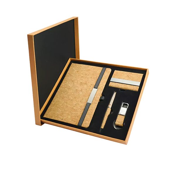 Enhance your corporate gifting with this elegant Office Gift Set (GS-702), thoughtfully curated to combine style, functionality, and professionalism. The set includes a PU leather-bound notebook, a sleek metal pen, a minimalist card holder, and a stylish PU and cork keychain. Each item is crafted to elevate everyday office productivity while reflecting a premium touch.
