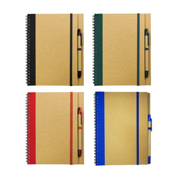 Stay organized while supporting the environment with our A5 Recycled Spiral Notebook with Stylus Pen & Elastic Band. Crafted from durable recycled cardboard, this notebook is designed for versatility, portability, and eco-conscious use. Ideal as a corporate gift, promotional giveaway, or personal stationery, it blends functionality with sustainability.