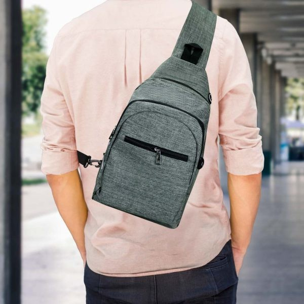 Sleek and functional triangular sling crossbody bag with headphone hole, multiple compartments, and breathable padded strap. Perfect for daily commuting, travel, or hands-free adventures.