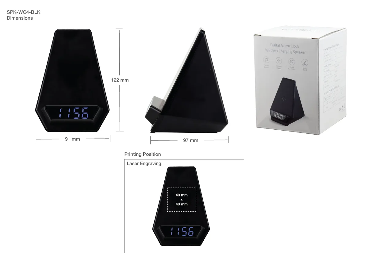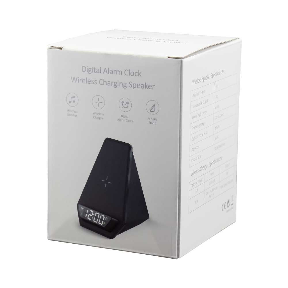 Wireless Charger BT Speaker with Clock & Light-up Logo