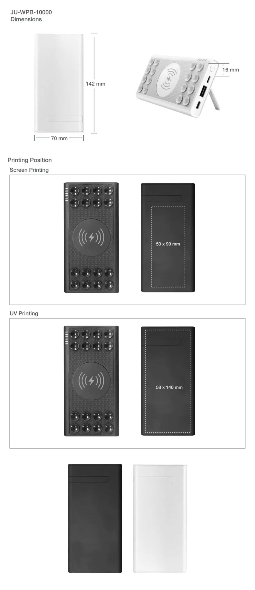 Available in classic white and black colors, it offers excellent branding potential through full-color UV printing or screen printing, making it an ideal promotional tech accessory.
